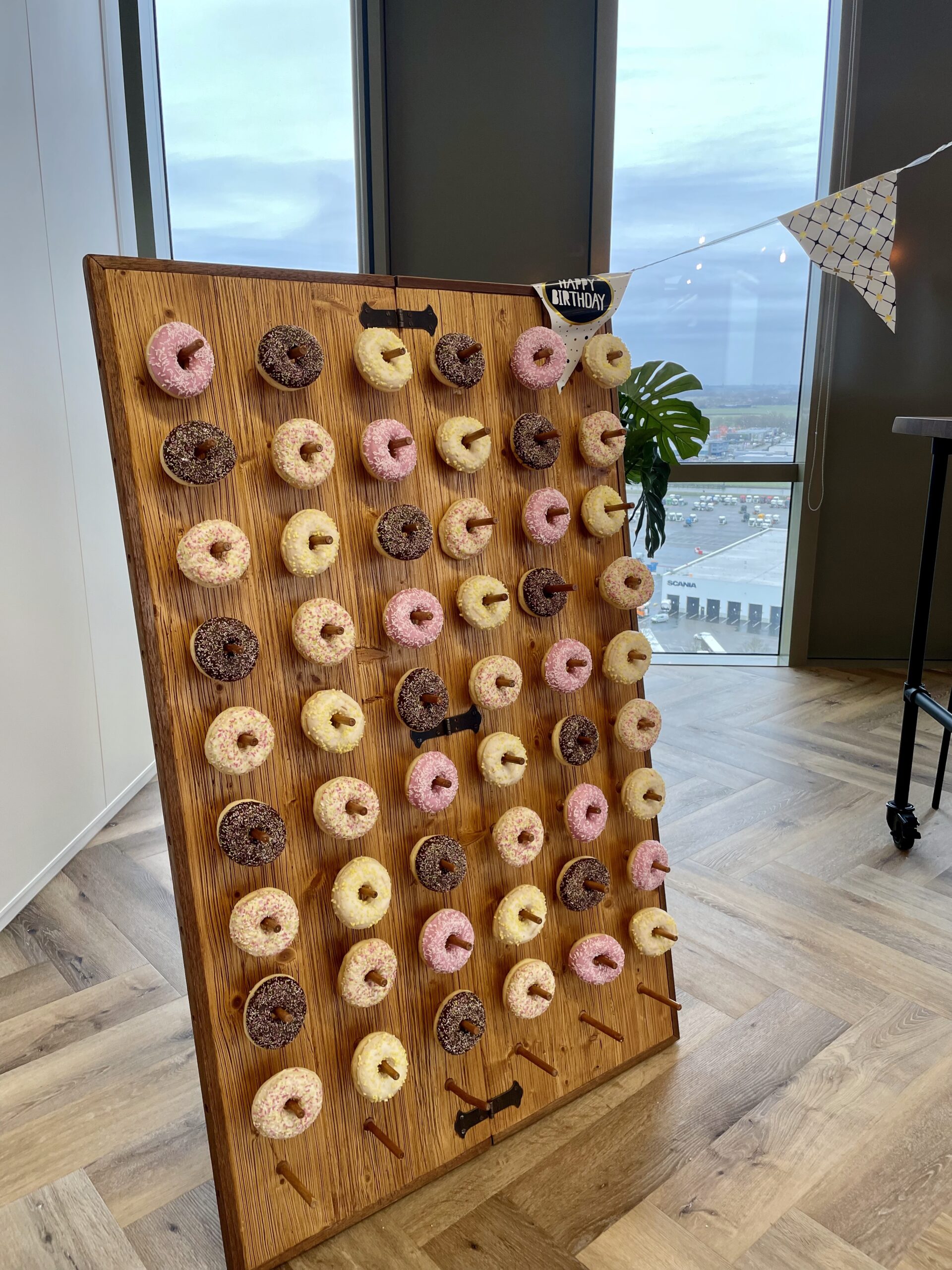 Voorafgaande prima communicatie. Op de dag zelf was de donutwall goed verzorgd! De communicatie verliep goed (Vriendelijk en prettig op de achtergrond aanwezig). De donuts vielen goed in de smaak!